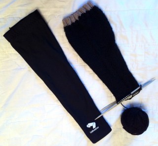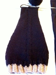 making progress with the arm warmers. i think finger holes will be possible, but im still trying to work out how to incorporate elastic in the upper arm. the original arm warmer is to the left so you can see what im working from.
