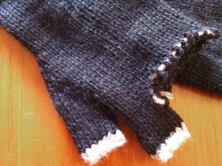 almost done the first arm warmer! i have three more fingers to knit. so far, so great! they fit really well.. it helps to have multiply try on ‘sesh-es’ to make sure things fit right. i followed natalya for the thumb gusset and loosely for the first finger.