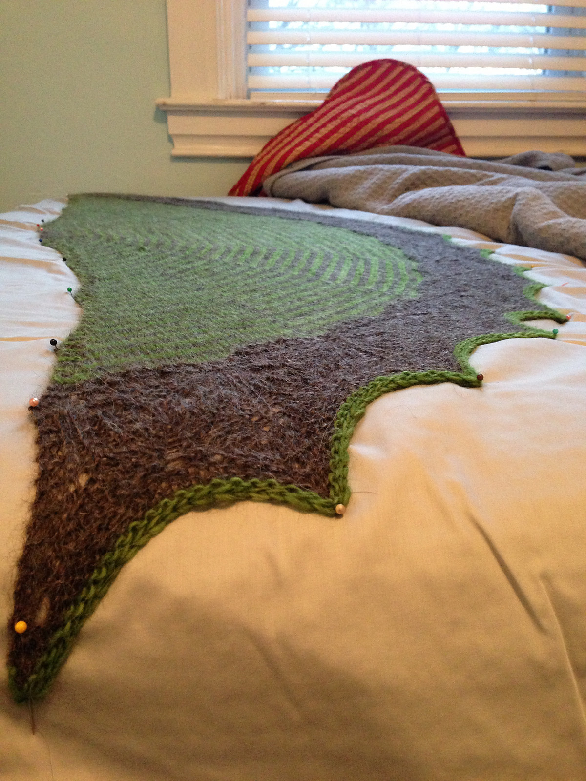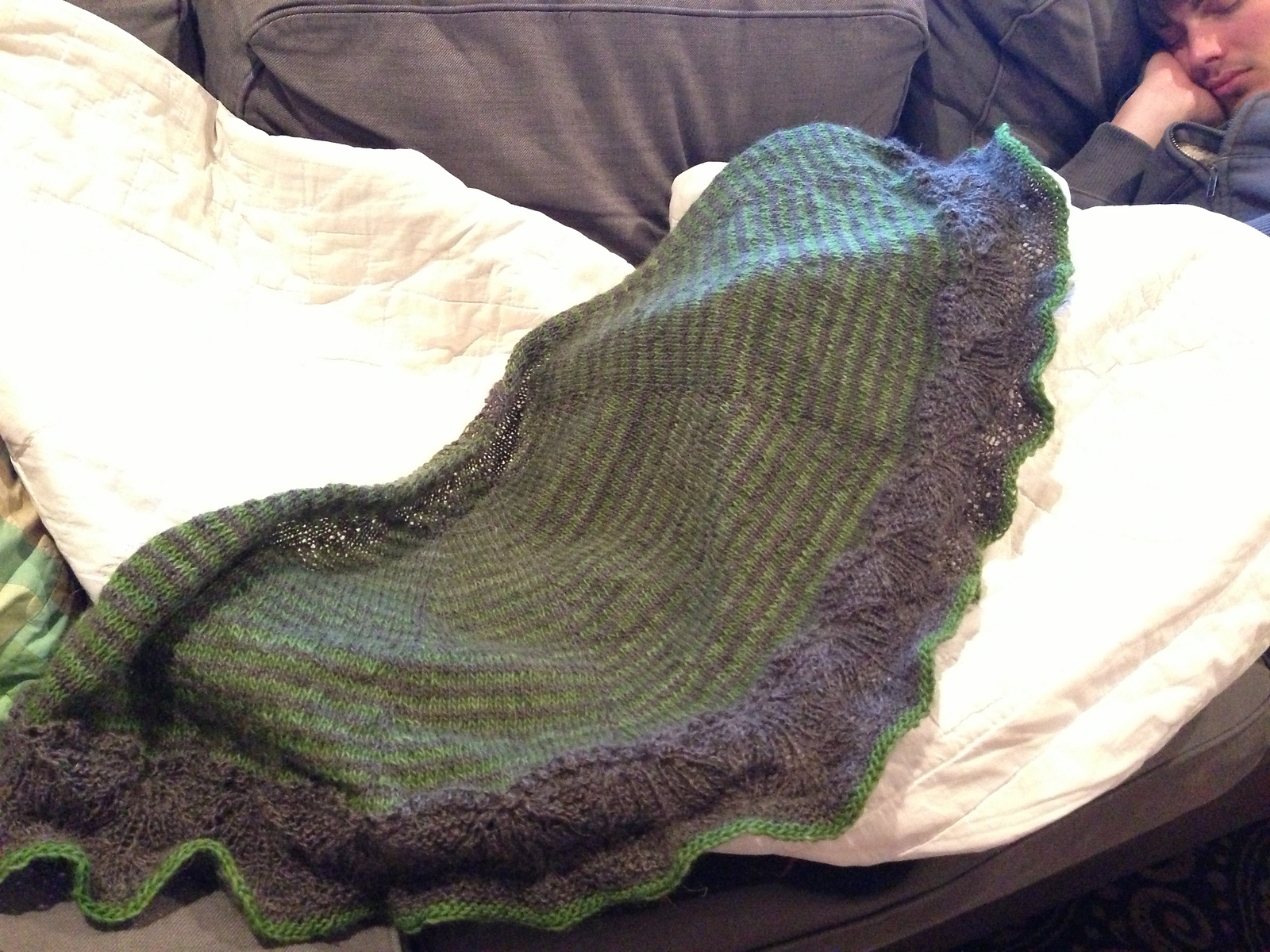 i finished my cladonia! I started it right before Christmas so I would have some “home for christmas knitting.” i finished almost all of the striped portion when i was home, and finished the lace through mid january. since i used heavier yarn than the pattern specified, i adjusted the edging to be just garter stitch and i used the suspended bind off (not tight, but not terribly stretchy. its truly perfect!). i love it and its very warm and big.