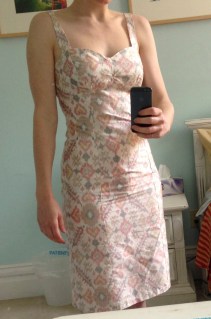 Before zippers class (B.Z.), I made a lovely Georgia Dress from By Hand London. I tried very hard to make the weird straps version, but it just wasn’t going to happen, so I did the more normal-looking straps. I used some silk from the PA Fabric Outlet (it was $2/yard!!!). per usual, I’ll try to get some nicer pics of this dress, but here are some for the meantime.