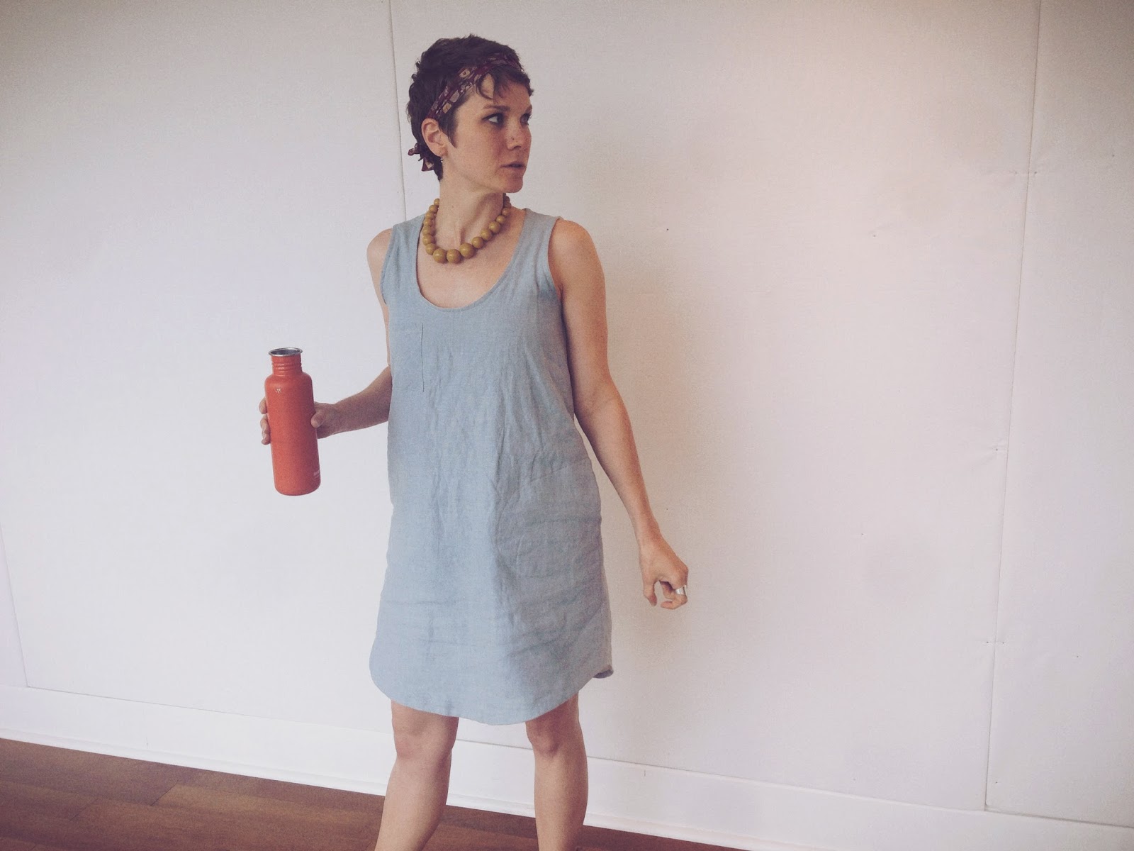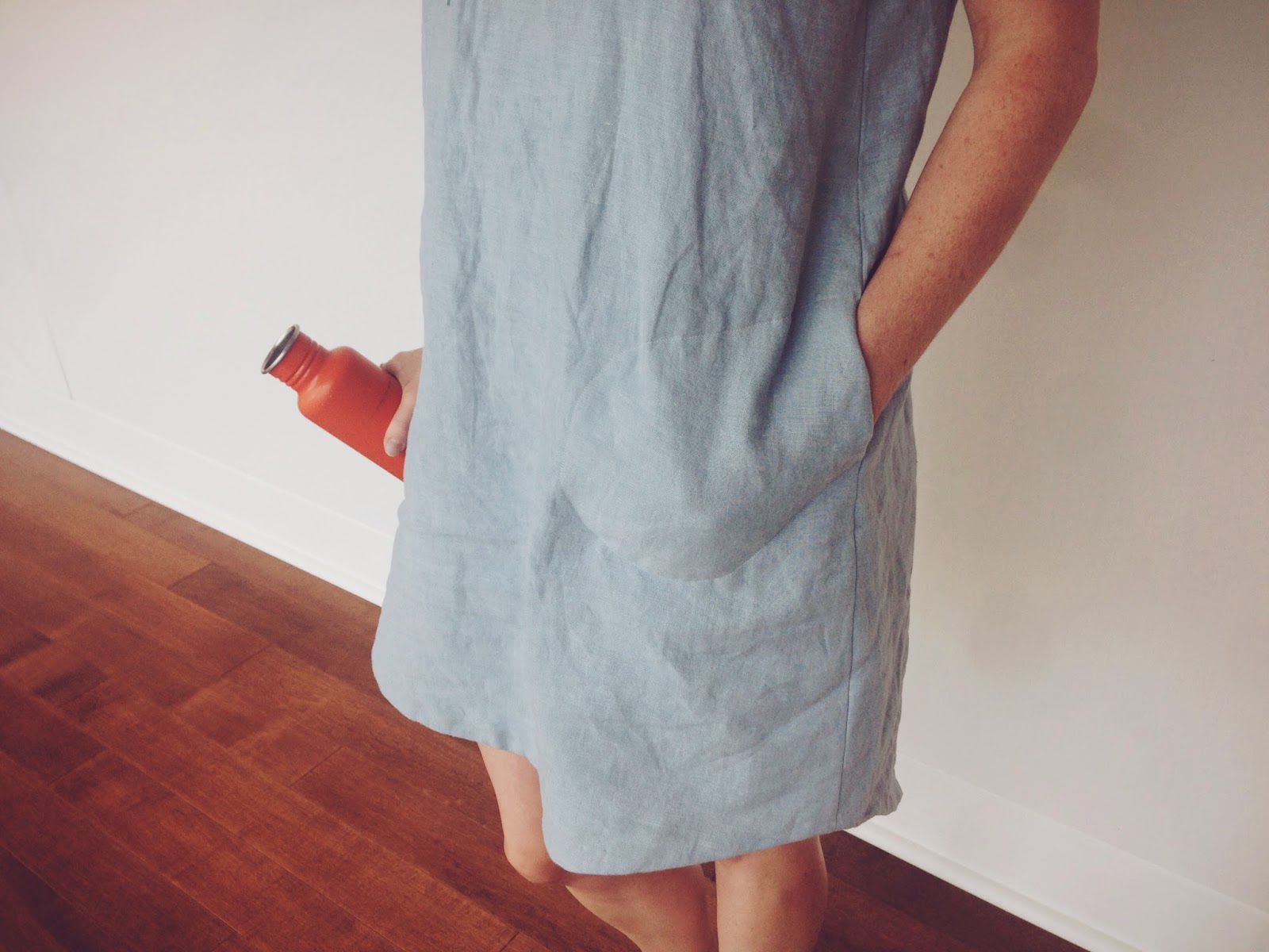 I am several years late to the Tova Dress party, but I’ve finally made my entrance. I had this Italian double-cloth shirting remnant from Firecracker Fabrics in my stash since Spring, and just couldn’t figure out what to make with it. I agonized over deciding, looking up every indie dress pattern I could think of and then googling to see how other people’s looked. You can see my final decision was the Tova. (I am also wearing my Wiksten Oversized Kimono jacket from Making Magazine!)